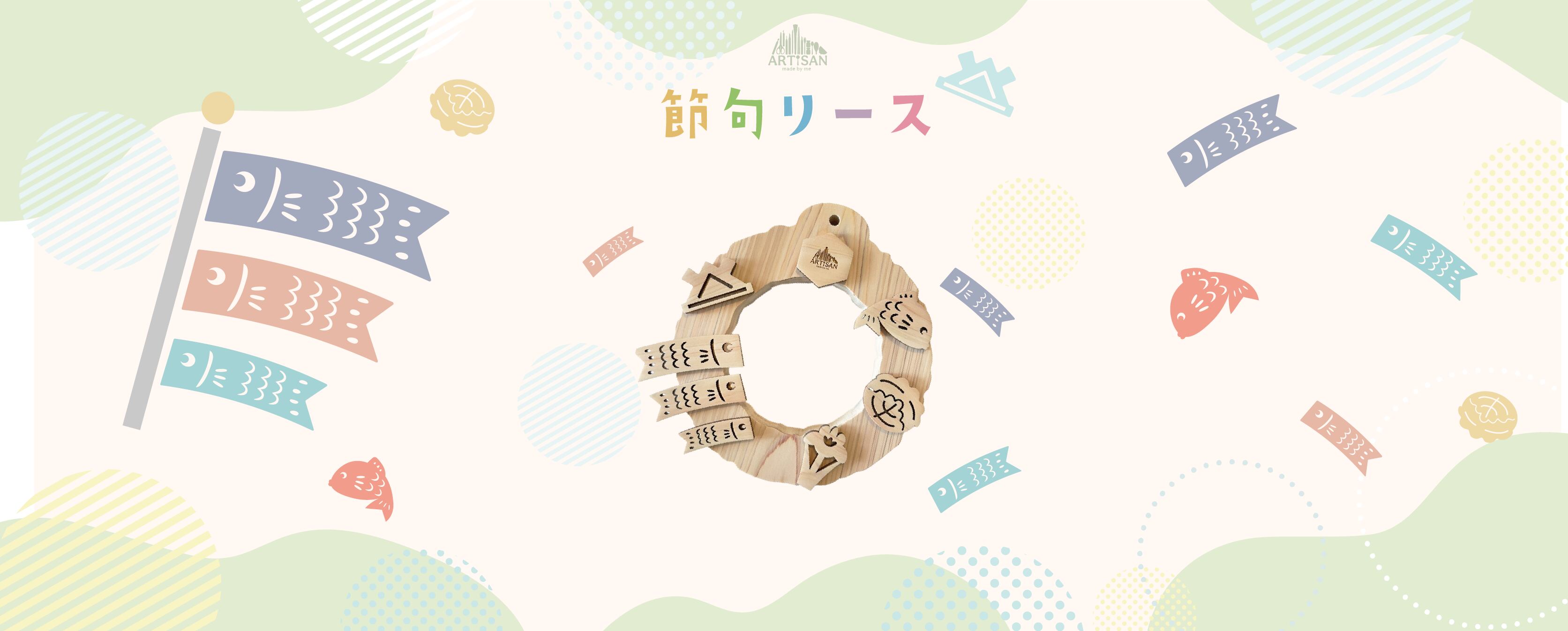 色とりどりのこいのぼりや、兜のパーツを組み合わせて、自分だけの個性的な節句リースを作りましょう!